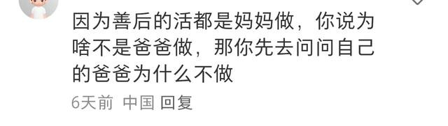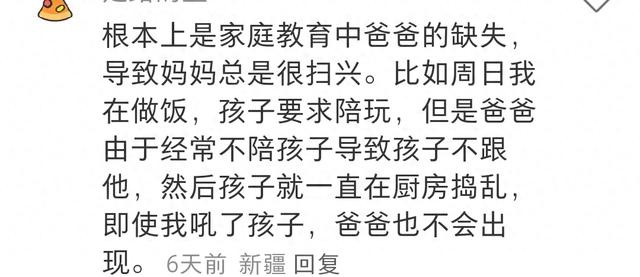 因为最后兜底,背锅的还是妈妈,爸爸带出去乱吃,孩子生病了扔给妈妈,其他老人也会怪妈妈怎么带的娃,上课也是妈妈陪着,考不好了,妈妈怎么辅导作业的,早上起不来,为什么妈妈不早点哄睡?爸爸让孩子玩手机,玩平板,眼睛近视了,也会坏妈妈,所有的错,都是妈妈不对。